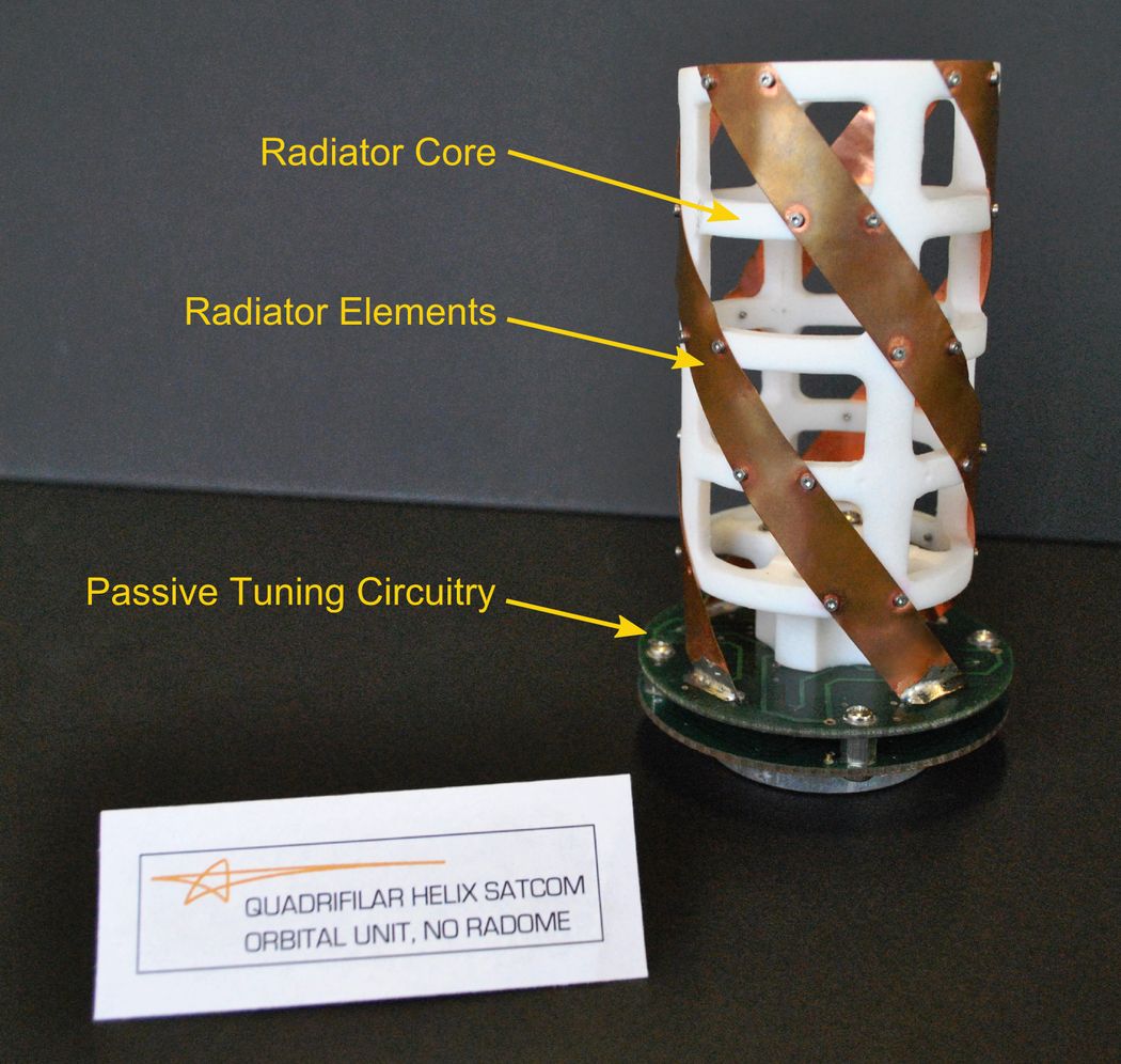 A quadrifiliar helix antenna for terrestrial satcom connections at remote stations.